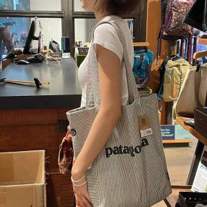 2023 Nuova borsa per la patagonia riciclata in autunno e invernale per donne a strisce con una spalma di tela