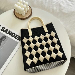Carina borsetta panda da donna Borsa per secchio in filo a maglia per il pranzo a mano versatile