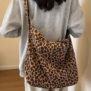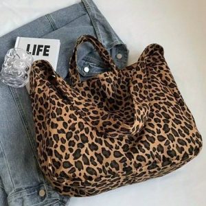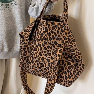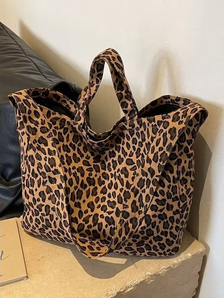 2025 colpire la borsa con stampa leopardata di grande capacità, borsa a tracolla in tela, borsa per la spesa a mano, borsa a trama per donne