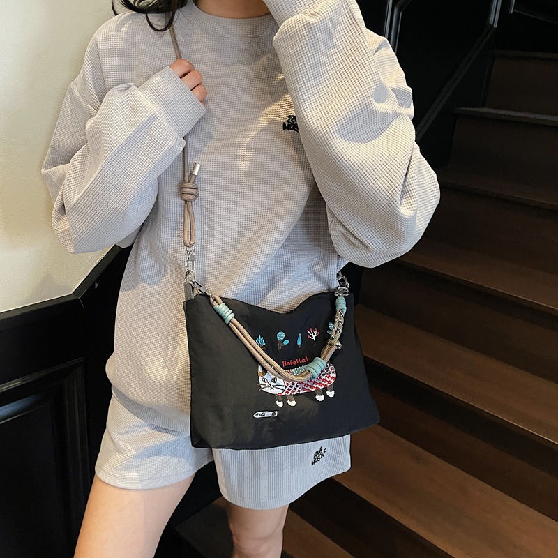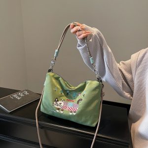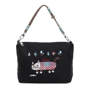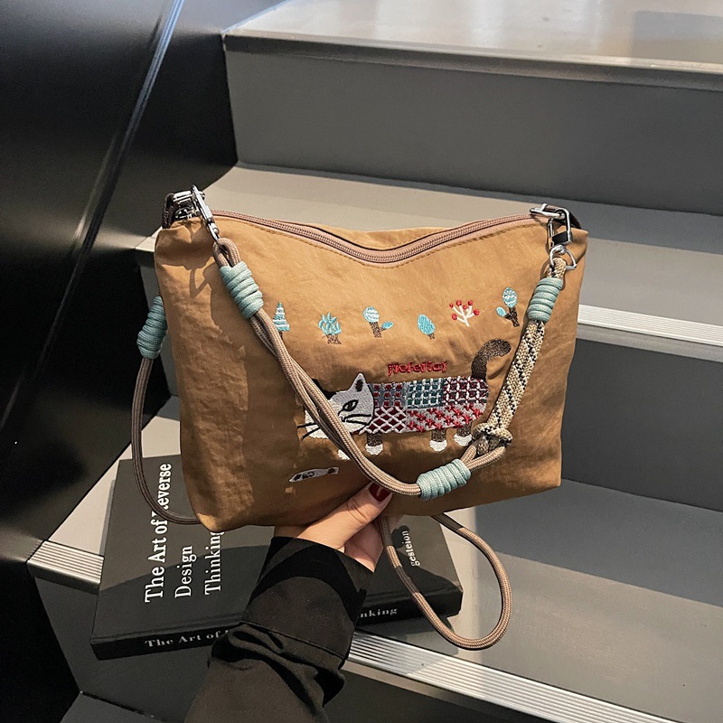 Borsa da ricamo da gatto primaverile ed estate di grande capacità Wat a tracolla da portata a tracota per spalle borsetta per spalle borse da spicco da cartone animato sacca da cartone animato