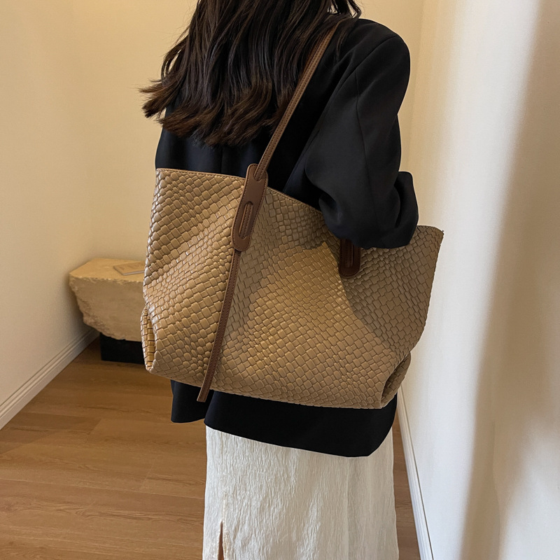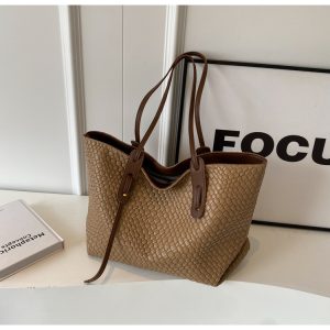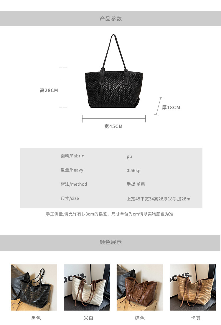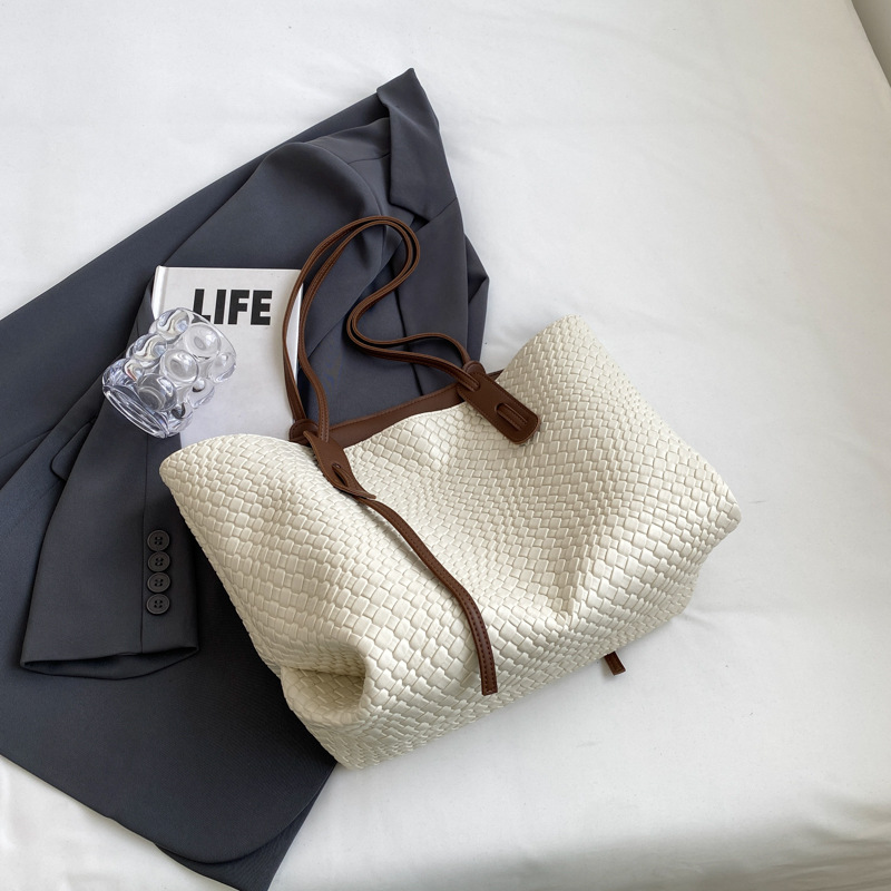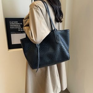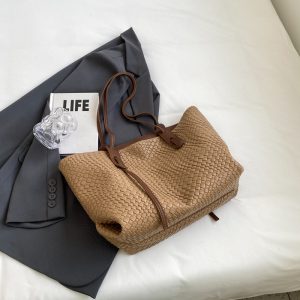 Borsa di grande capacità di moda Nuova borsa da donna a maglia da donna casual e alla moda per sponnessa a colori solidi College Student Tote Bag