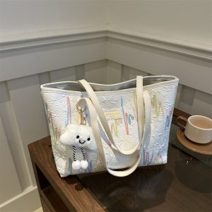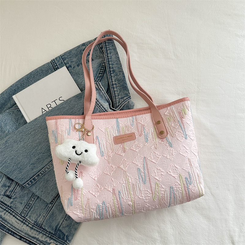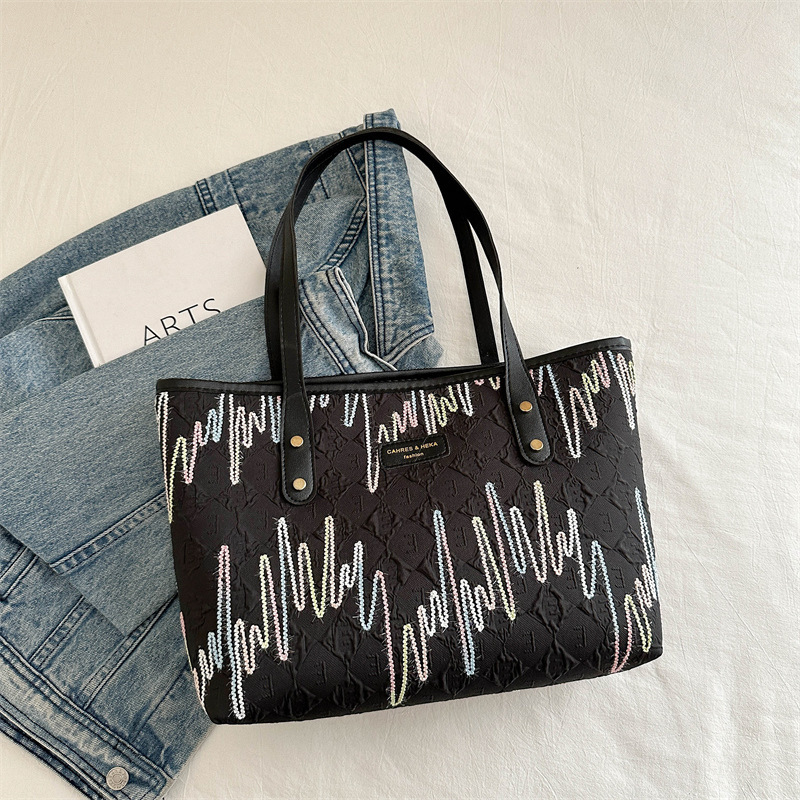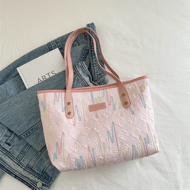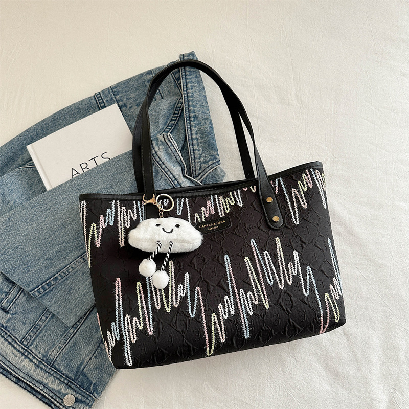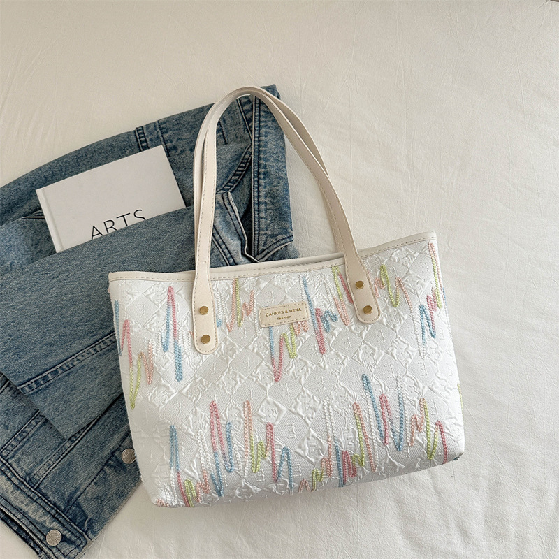 Borsa di grande capacità di pendolarismo casuale per donne 2025 Nuovi studenti universitari di moda in classe a strisce ricamate a strisce a strisce