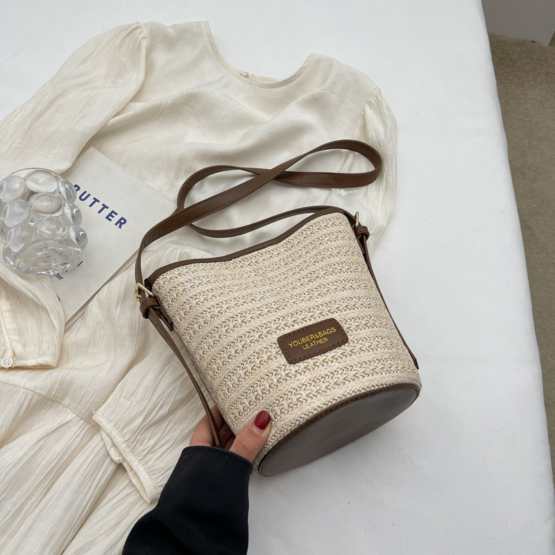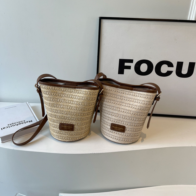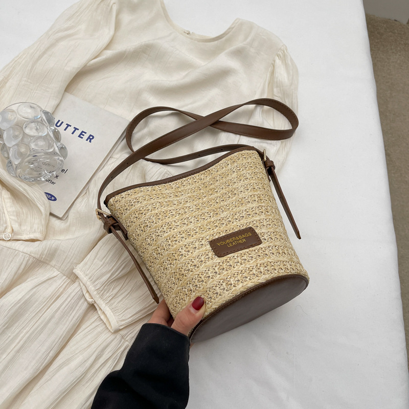 Borsa intrecciata di paglia 2024 Summer Nuovo donna Casual Beach Borse Sangue Nicchia Stema One Shoulder Crossbody Borse per donne