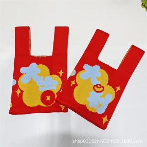 Carina borsetta panda da donna Borsa per secchio in filo a maglia per il pranzo a mano versatile