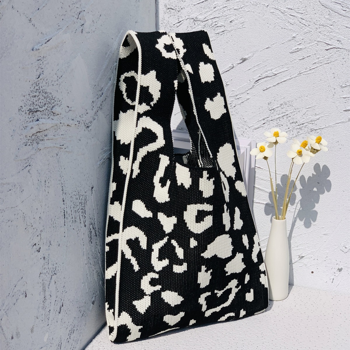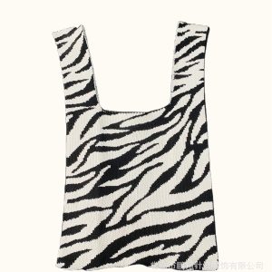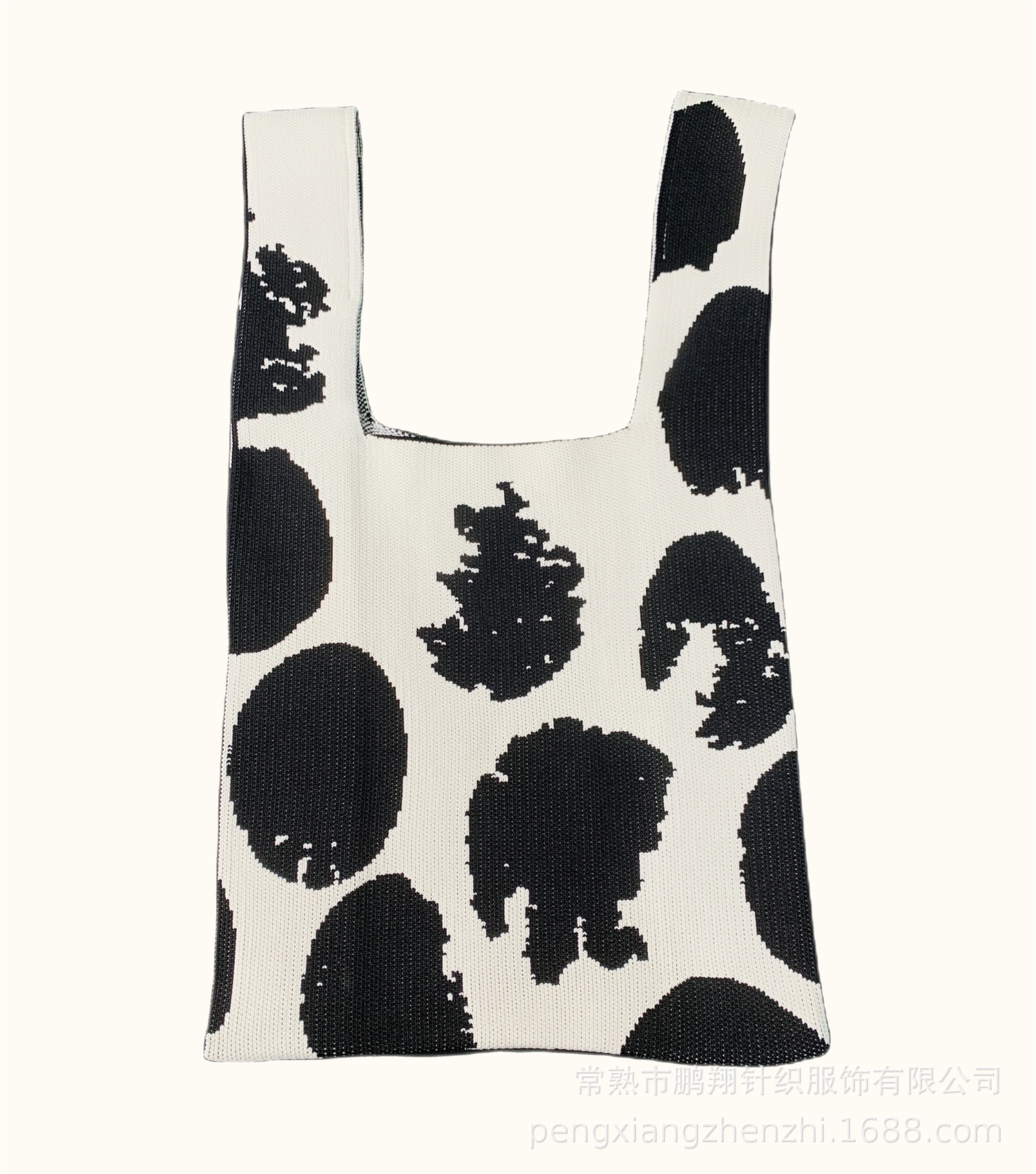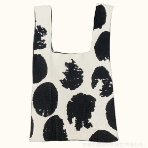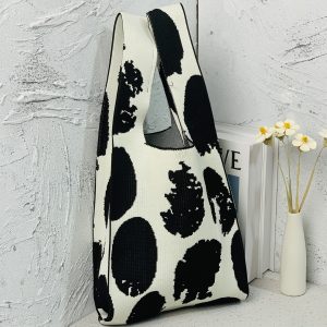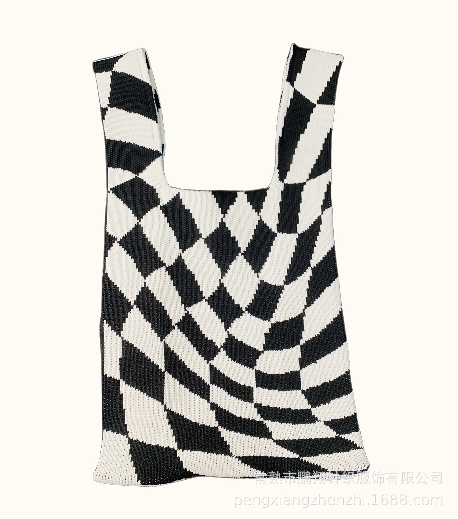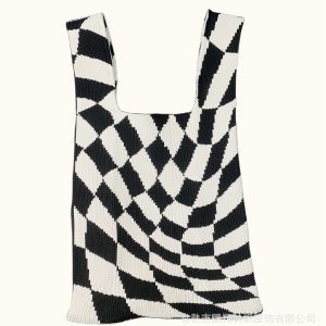 Giubbotto a controllo in bianco e nero a controllo bianco e nero con una spalla con una borsa per la spesa a maglia da lavoro a maglia da lavoro a maglia da donna