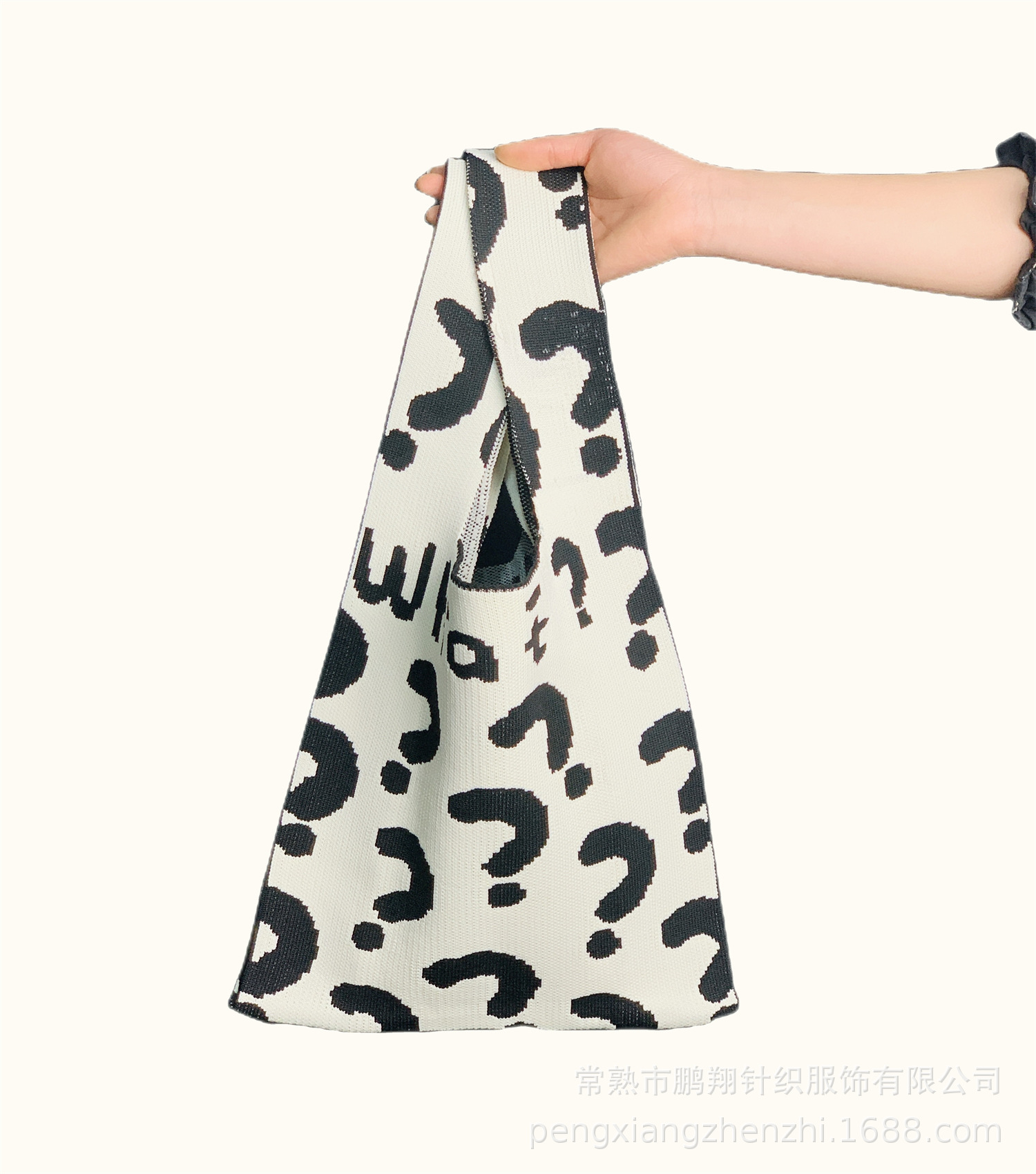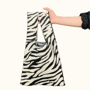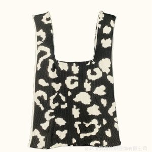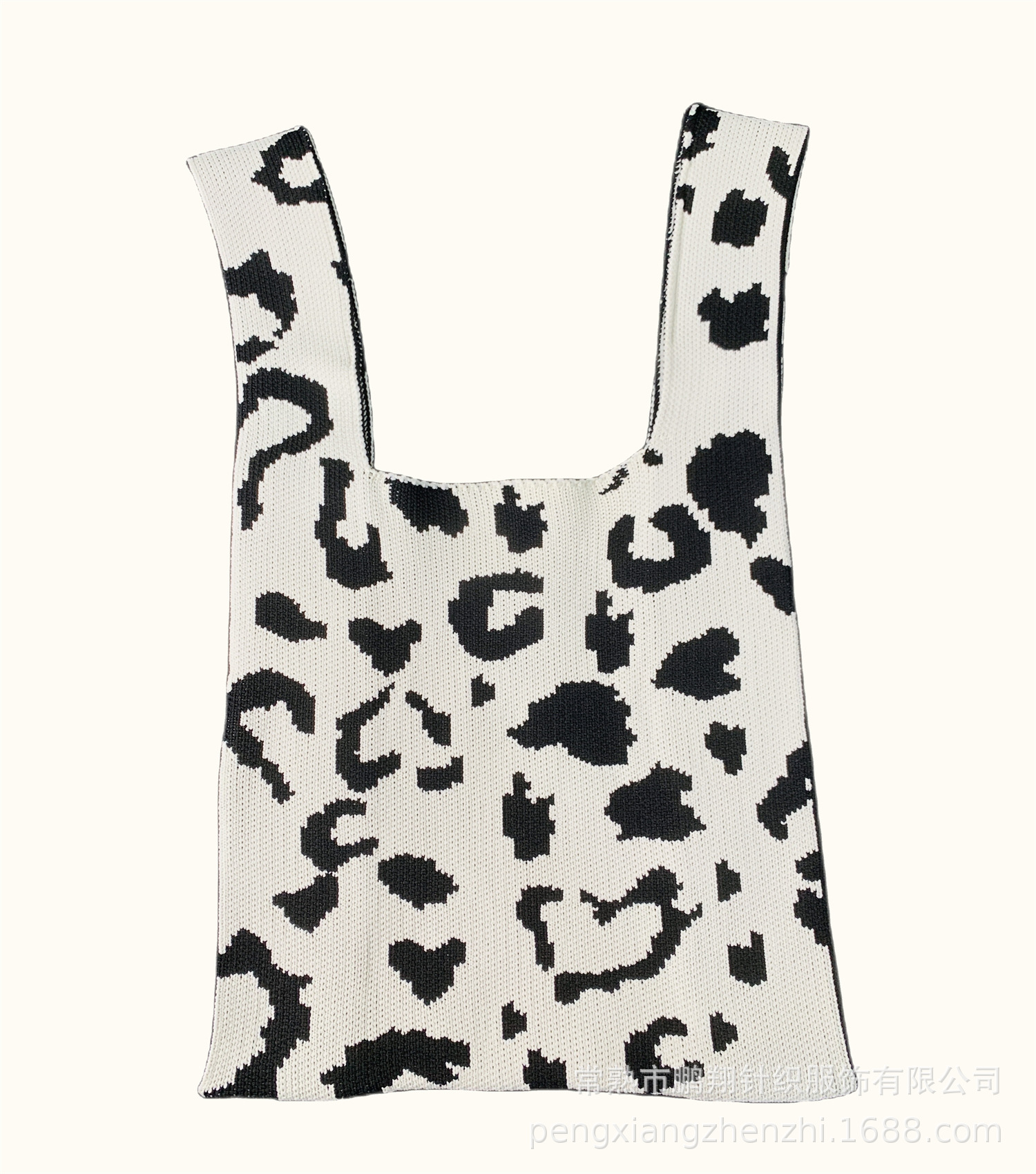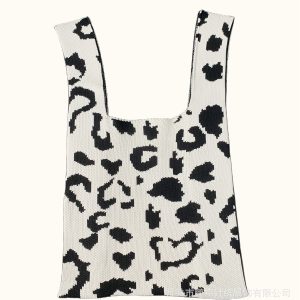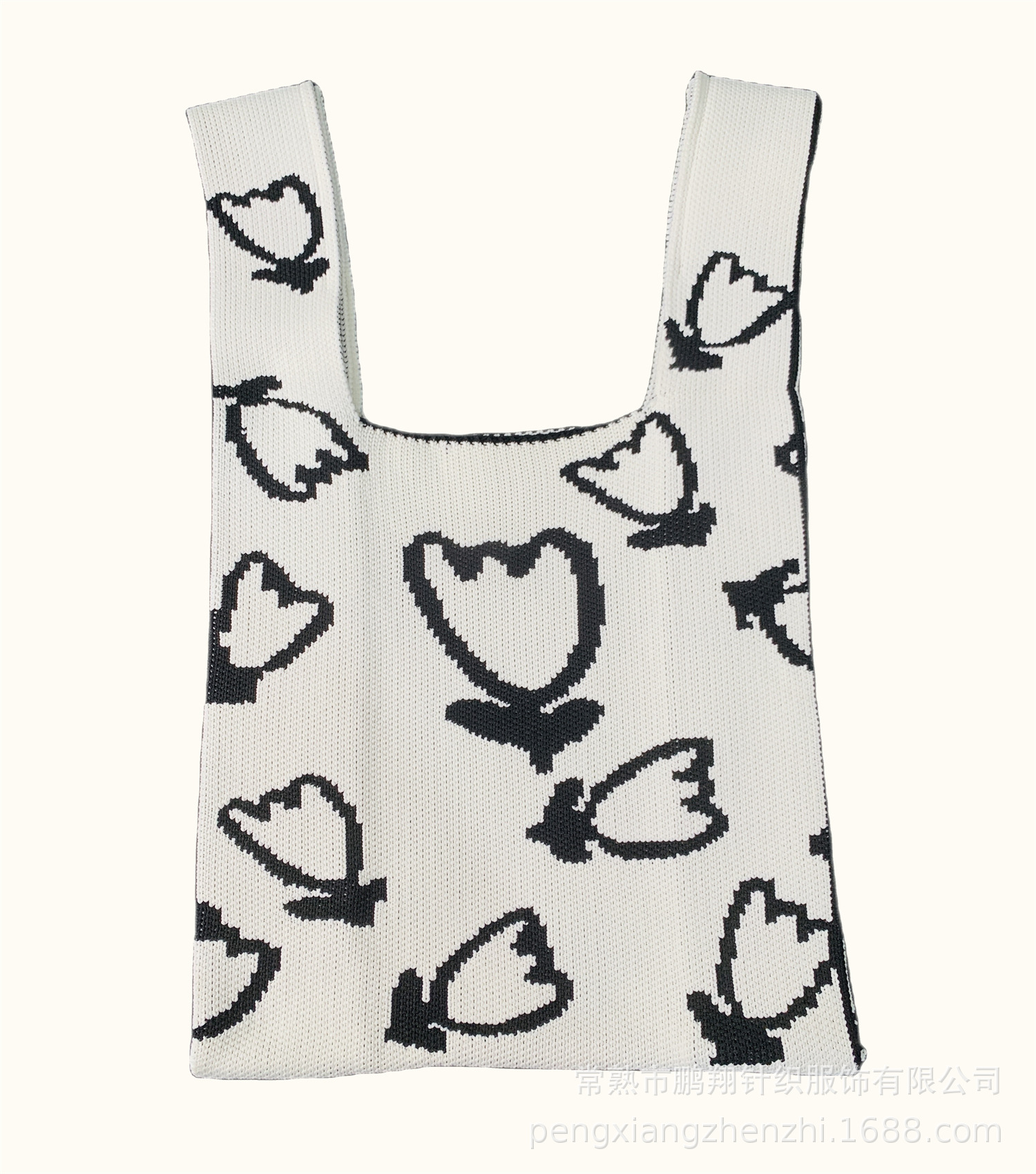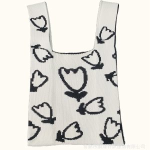 Giubbotto a controllo in bianco e nero a controllo bianco e nero con una spalla con una borsa per la spesa a maglia da lavoro a maglia da lavoro a maglia da donna