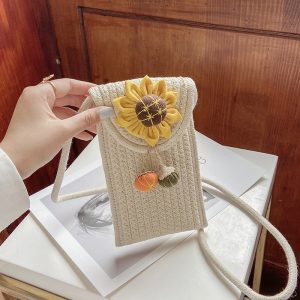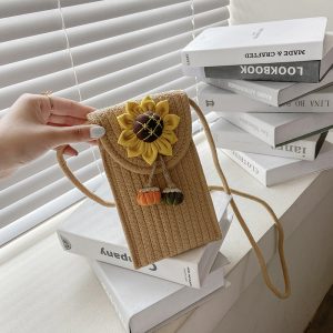 Nuova borsa intrecciata fiore a una spalla a spicco con una borsa da donna in spiaggia per le vacanze per le vacanze in piega della corda intrecciata per rossetto sacchetto di rossetto