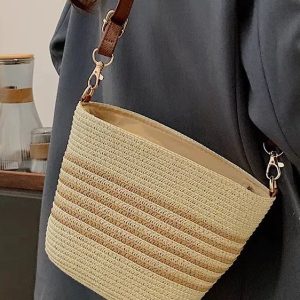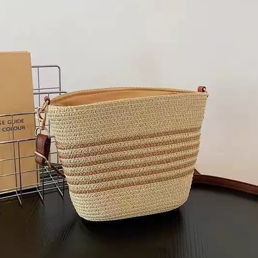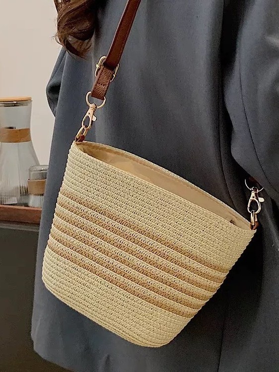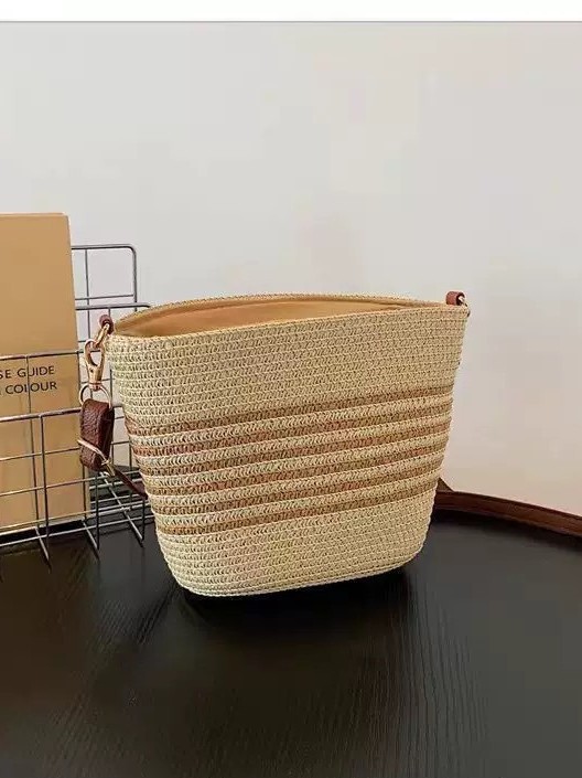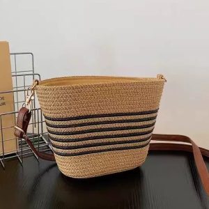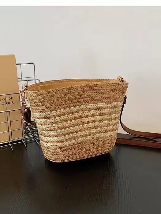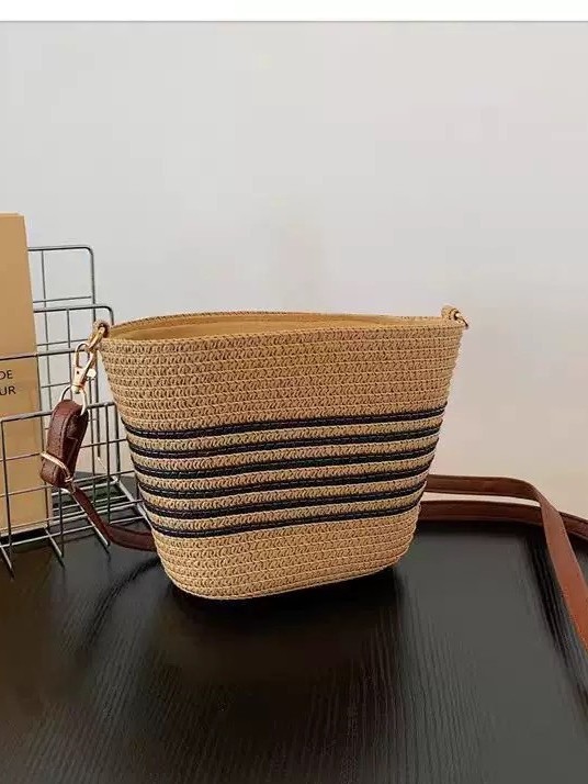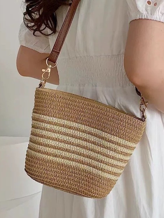 Nuova Summer Plaw fatta a mano intrecciata intrecciata e squisita stile vacanza in terapia a strisce una spalla versatile spiaggia da spiaggia da spiaggia