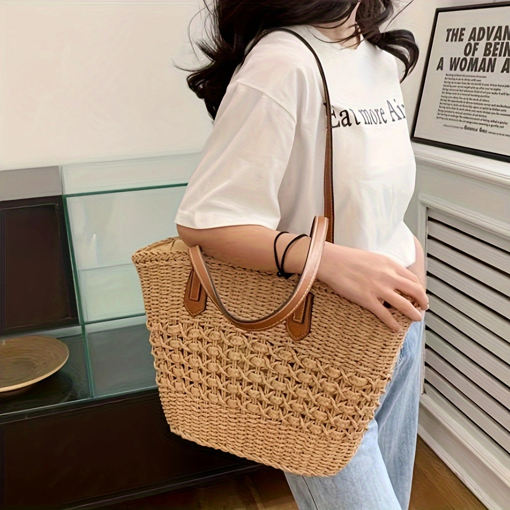 Nuovo sacchetto intrecciato con paglia a spalla Casma vegetale casual Borsa intrecciata fatta a mano BASSO DI AGGIUNZA CAMPAGGIO PAGNO PERCOLA DELLA BAGNO DELLA BAGNO DONNA DONNA
