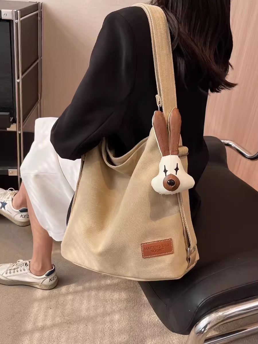 Sacca di tela di grande capacità in stile da donna in stile artistico e versatile Studente Student Leisure Leisure Mommy Borse