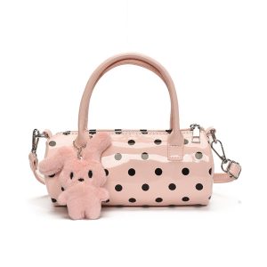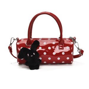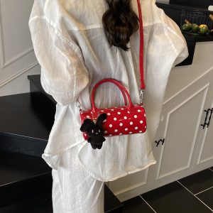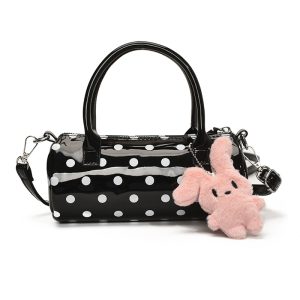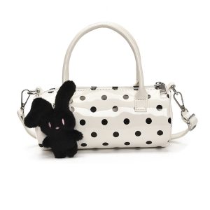 Versione coreana di simpatica borsa cilindro a mano Polka Polka Dot per donne 2025 Summer Fashion Versatile Casual Commuter One-Shoulder Crossbody Borse